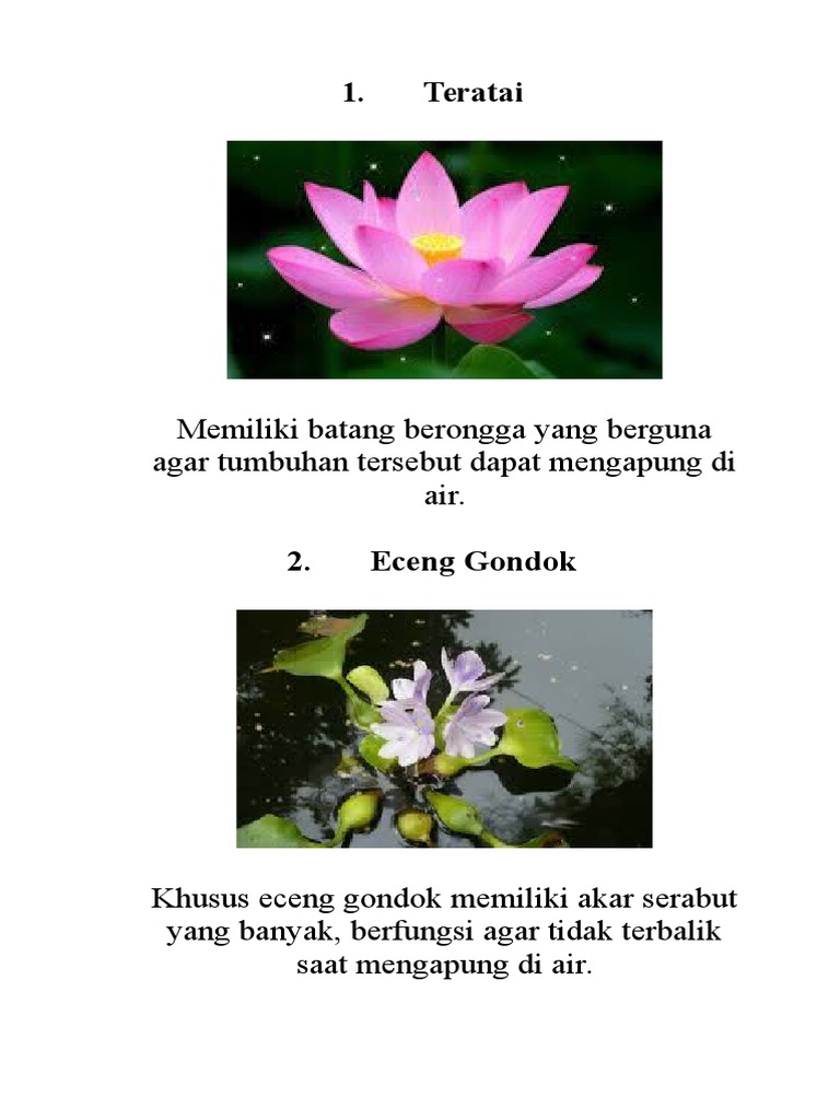 1 Teratai Memiliki Batang Berongga Yang Berguna Agar Tumbuhan