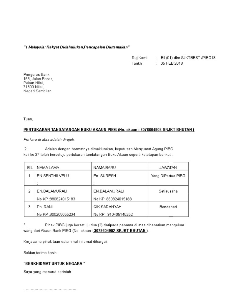Surat Tukar Penama Akaun Bank Pibg Docx