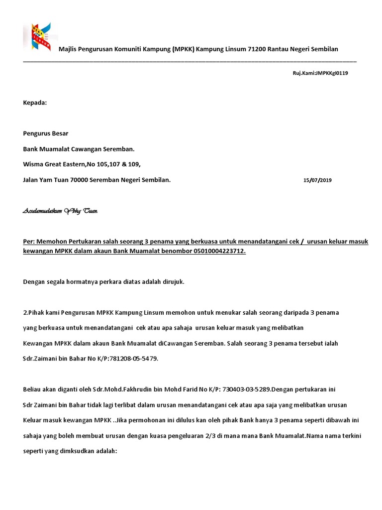 Contoh Surat Permohonan Membuka Akaun Kelab