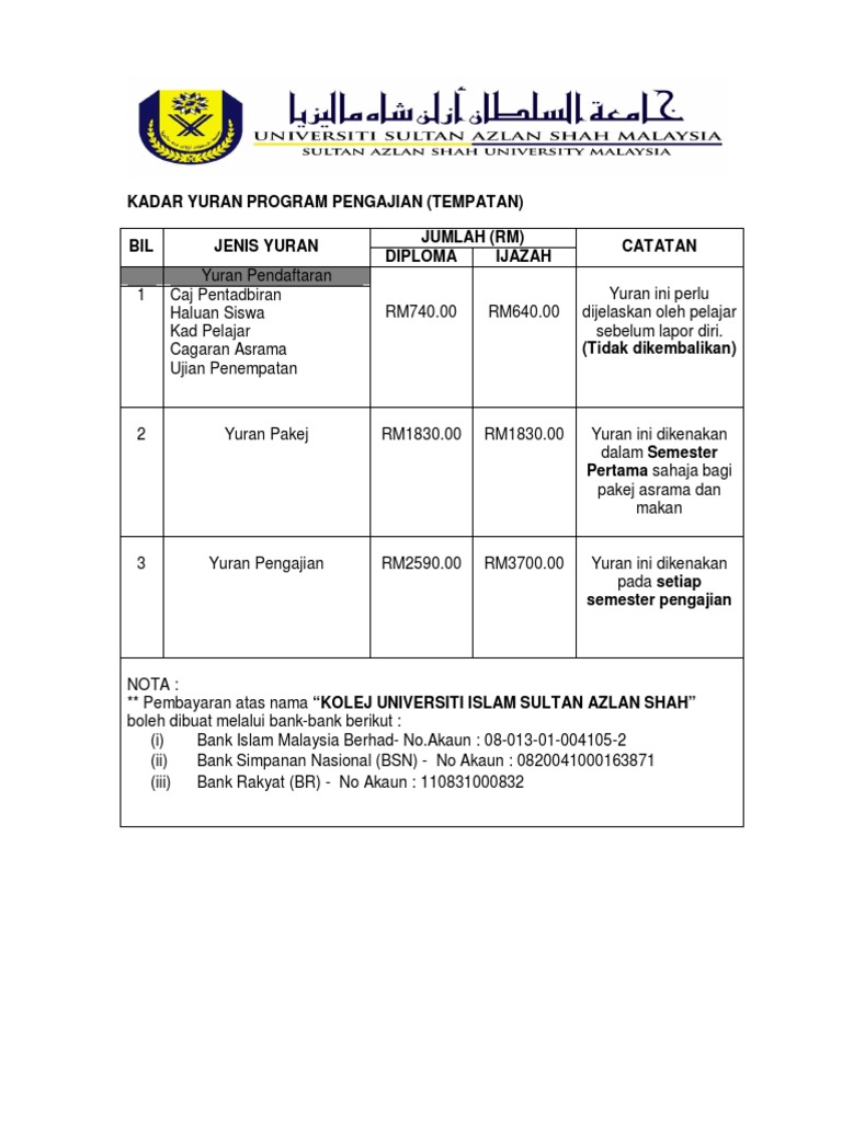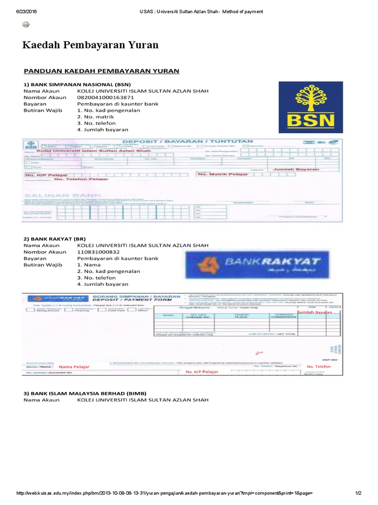 Usas Universiti Sultan Azlan Shah Method Of Payment 2