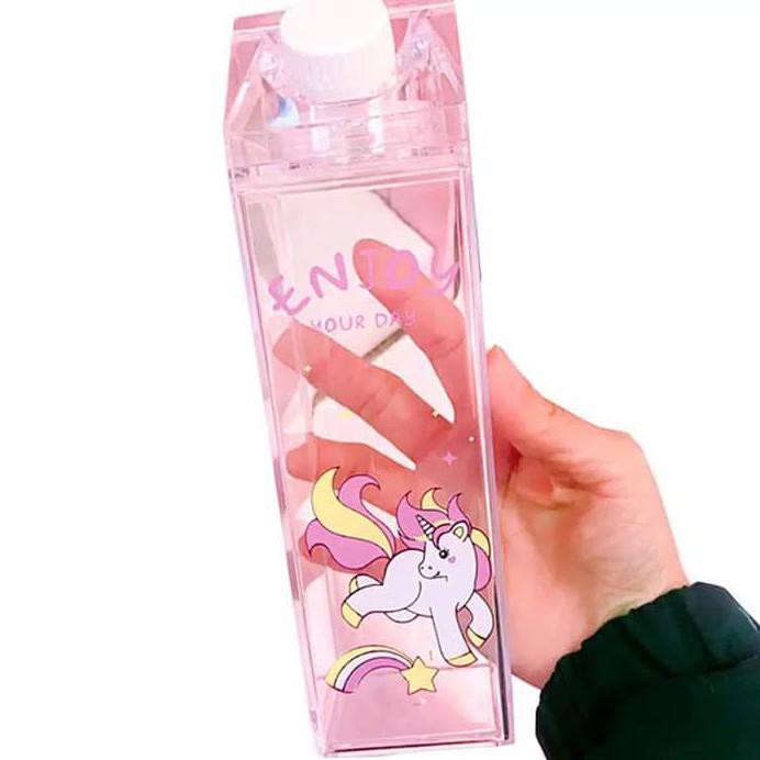Ins Unicorn Lucu Botol Air Kreatif Susu Bentuk Kotak Botol Minum