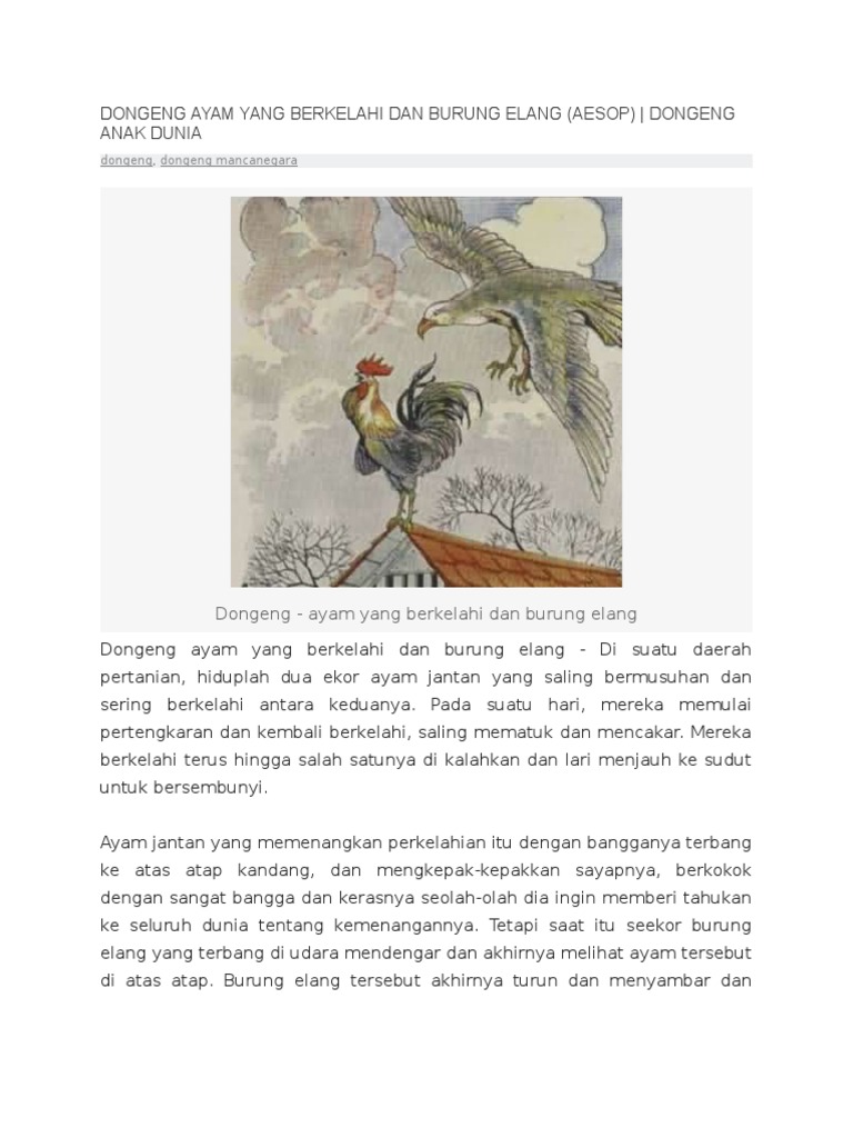 Dongeng Ayam Yang Berkelahi Dan Burung Elang Aesop Dongeng Anak Dunia Kumpulan Cerita Anak Dan Dongeng Anak Dunia