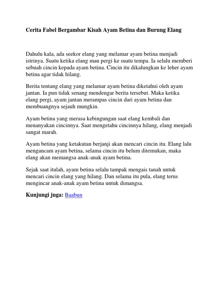 Cerita Fabel Bergambar Kisah Ayam Betina Dan Burung Elang