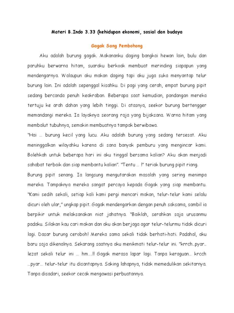 Materi B Indo Kelas 2 T3 St4 Gagak Sang Pembohong Docx