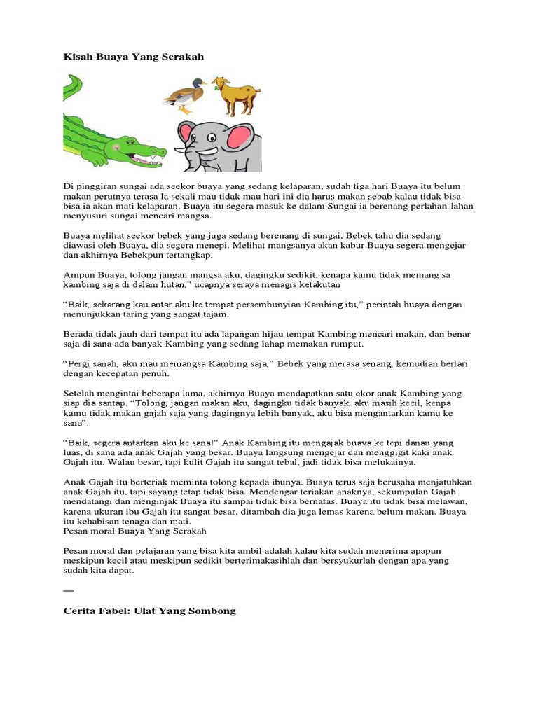 Cerita Fabel Pendek Buaya Yang Serakah Penulis Cilik