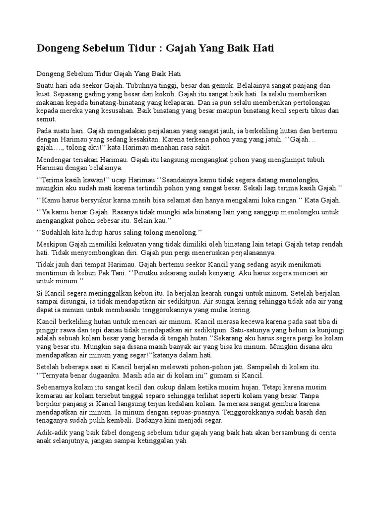 Dongeng Sebelum Tidur Gajah Yang Baik Hati Cerita Untuk Anak