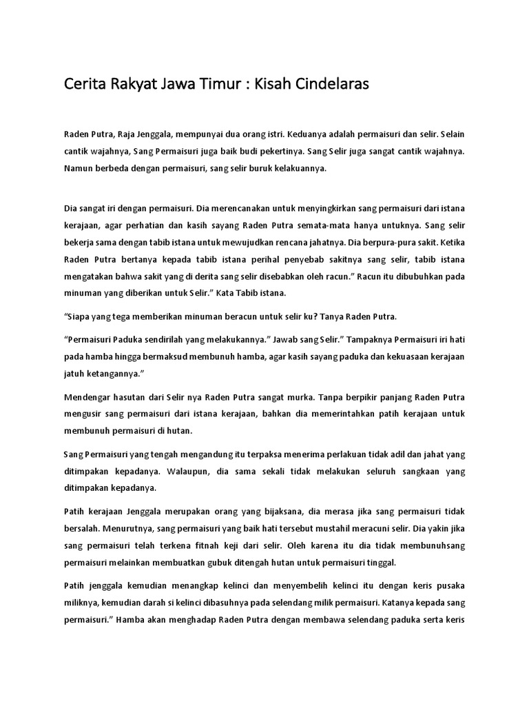 Doc Kisah Cinde Laras Cerita Rakyat Dari Jawa Timur Oni