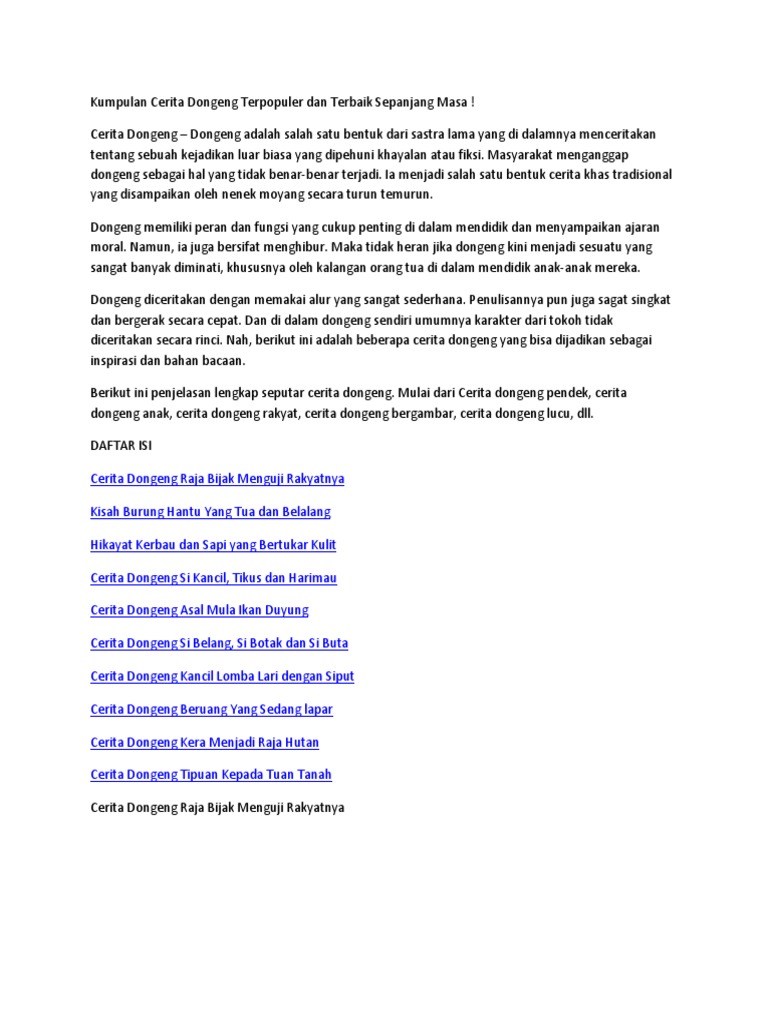 Kumpulan Cerita Dongeng Terpopuler Dan Terbaik Sepanjang Masa