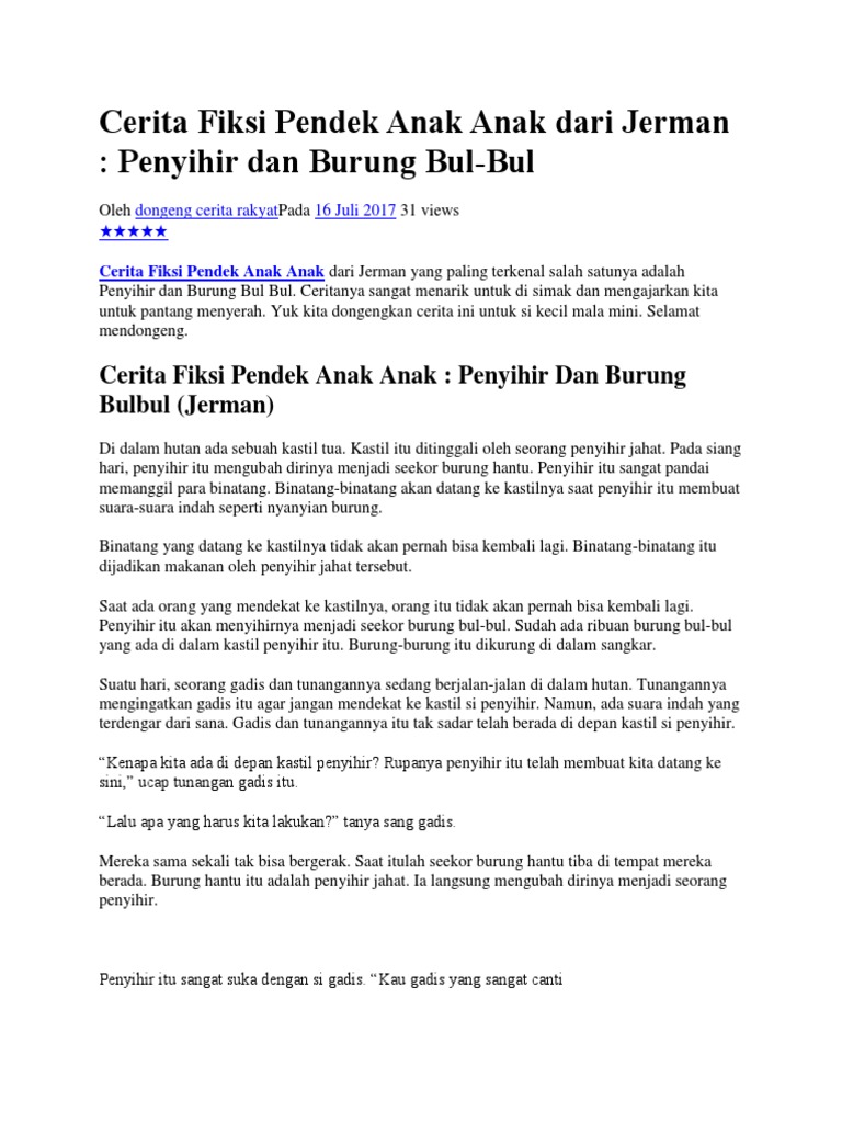Cerita Fiksi Pendek Anak Anak Dari Jerman Penyihir Dan Burung Bul Bul