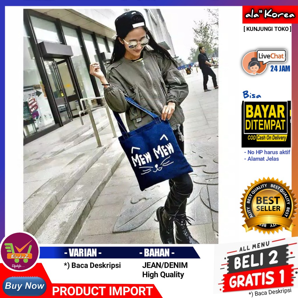 El245 Korean Style Tote Bag Jean Printed Two Original Wanita Tas