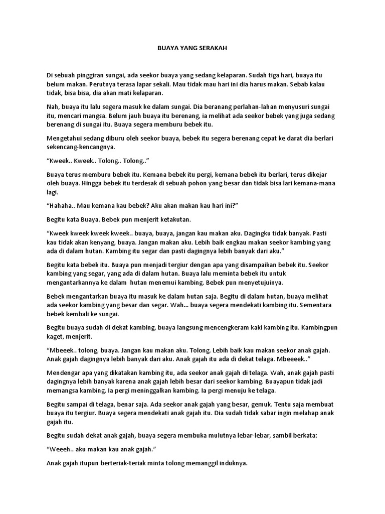 Contoh Cerita Fabel Buaya Yang Serakah Pesan Moral