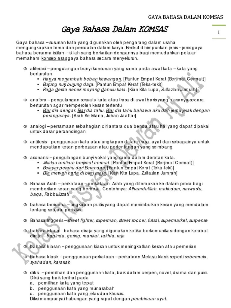 Contoh Gaya Bahasa Komsas Tingkatan 1 Mosik Express Cuitan Dokter