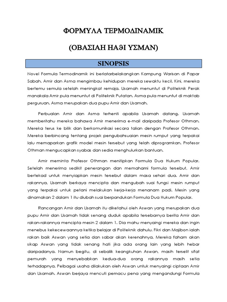 Novel Tingkatan 1 Formula Termodinamik Kupasan Novel Laman