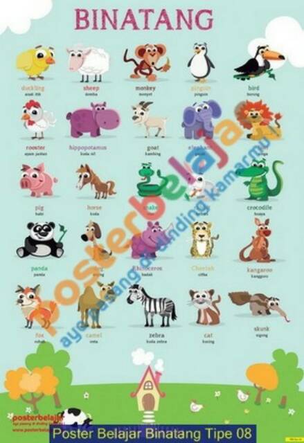 Tipe 08 Poster Belajar Anak Seri Nama Binatang Shopee Indonesia