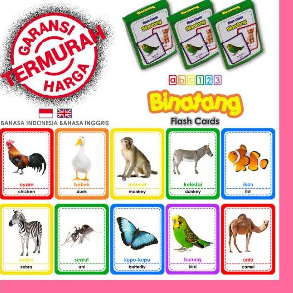 Flashcard Binatang Hewan Darat Air Udara Kartu Pintar Belajar