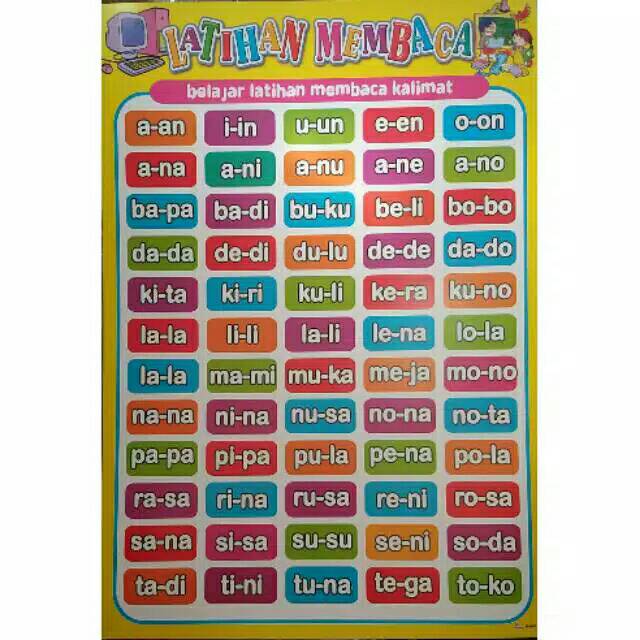 Poster Belajar Membaca Suku Kata 5 Huruf Belajar Membaca Suku Kata