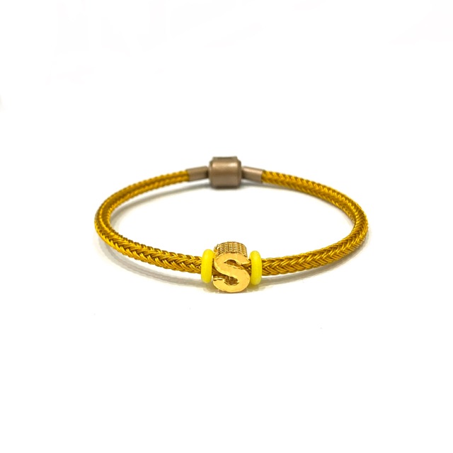 Gelang Tali Pandora Set Liontin Balok Huruf S Emas Asli Kadar 700