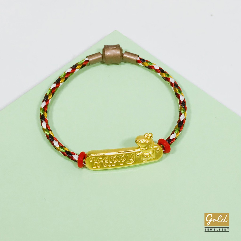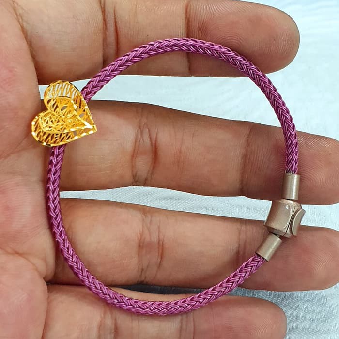 Gelang Tali Emas Hongkong 24k 999 Charm Happy Pandora Warna Warni