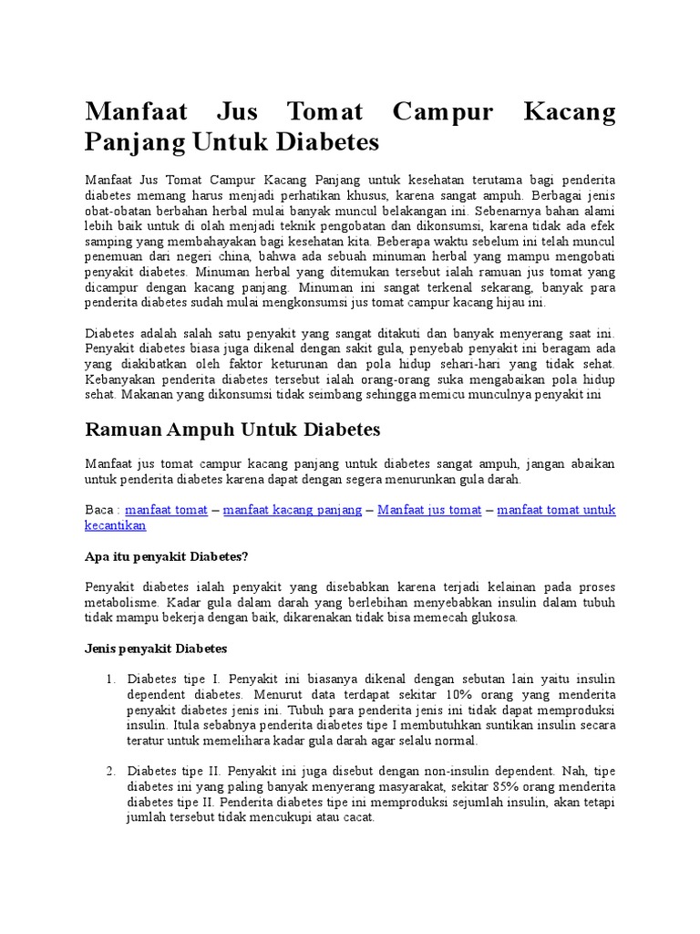 Manfaat Jus Tomat Campur Kacang Panjang Untuk Diabetes Nanang
