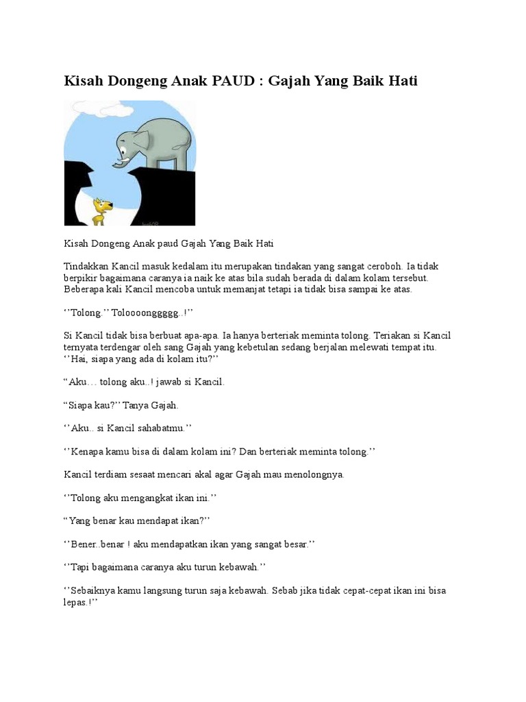 Dongeng Anak Paud Gajah Yang Baik Hati
