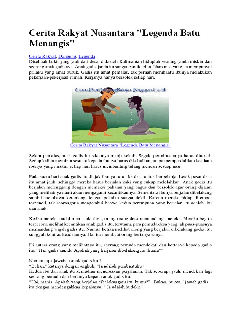 Dongeng Legenda Batu Menangis Dongeng Ku