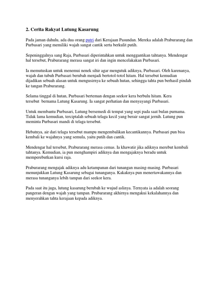 Legenda Lutung Kasarung Dan Purbasari Cerita Rakyat Contoh