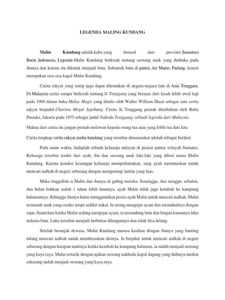 Doc Dongeng Malin Kundang Titin Ira Academia Edu