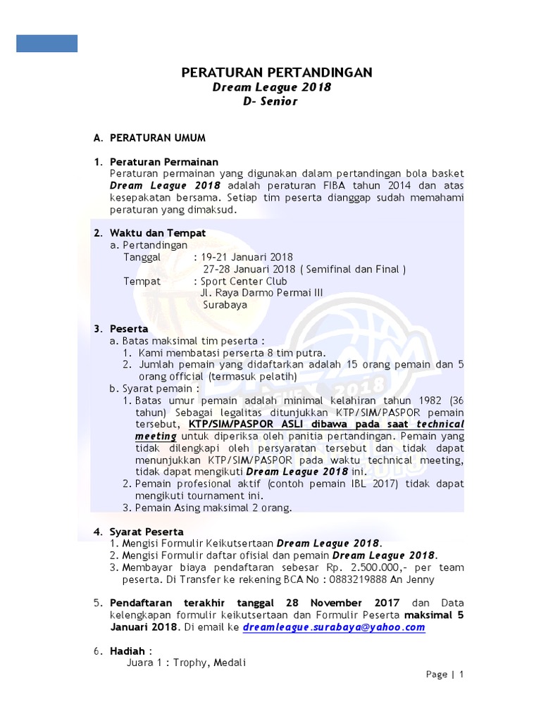 Peraturan Turnament Bola Basket Dream League 2018
