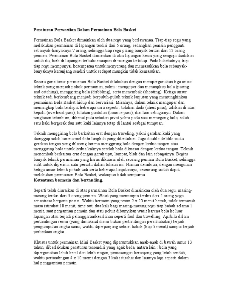Makalah Peraturan Dan Perwasitan Permainan Bola Basket