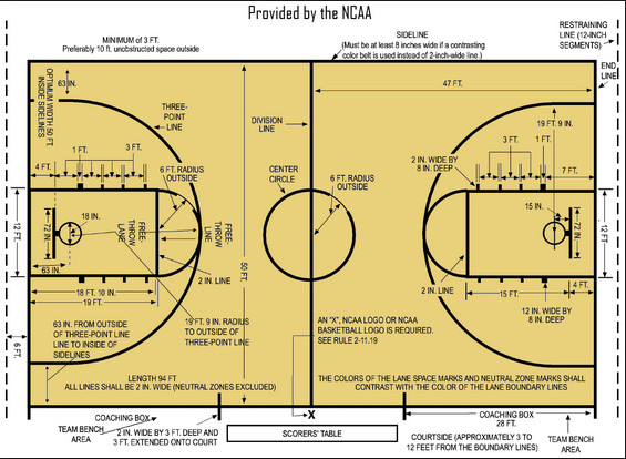 Gambar Ukuran Lapangan Bola Basket Lengkap Dengan Keterangannya