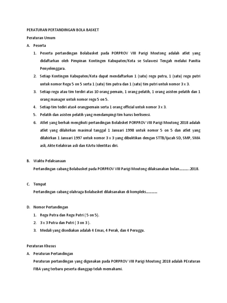 Peraturan Bola Basket Lengkap Padat Dan Jelas Pakar Dokumen