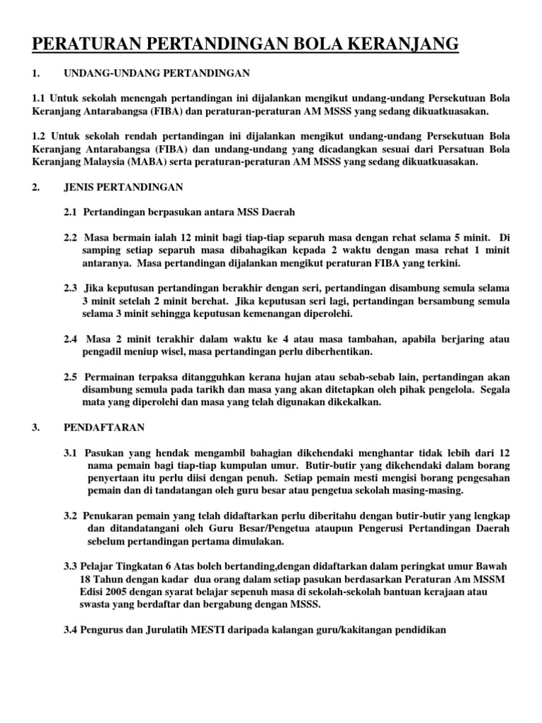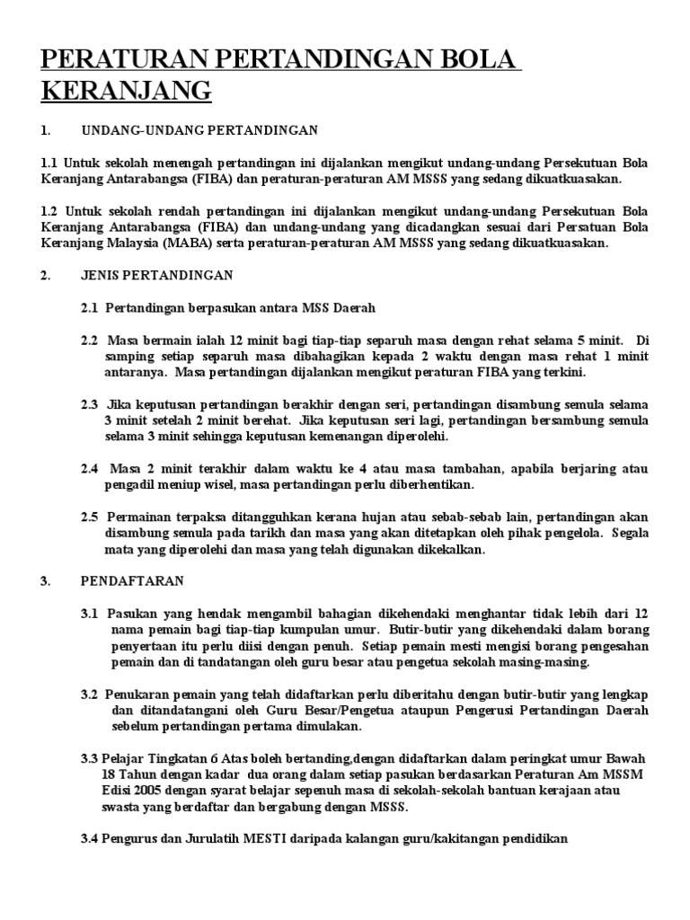 Peraturan Pertandingan Bola Keranjang Mssm 2018 08 Feb 2018 Pdf