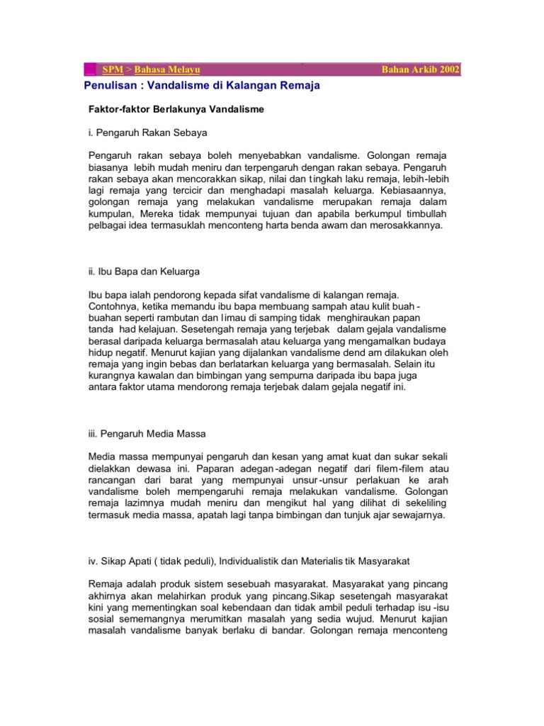 Karangan Faktor Vandalisme Dalam Kalangan Remaja