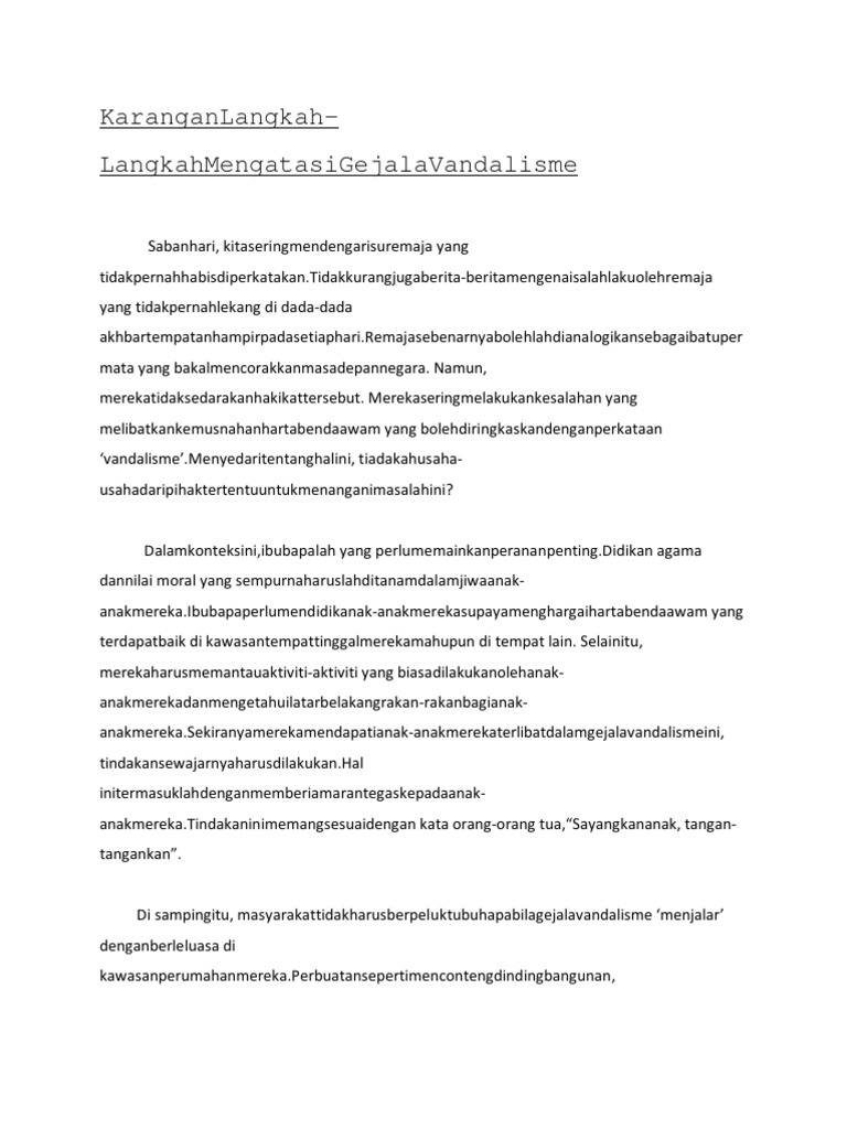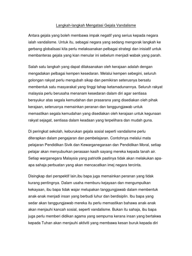 Karangan Langkah Langkah Mengatasi Gejala Vandalisme