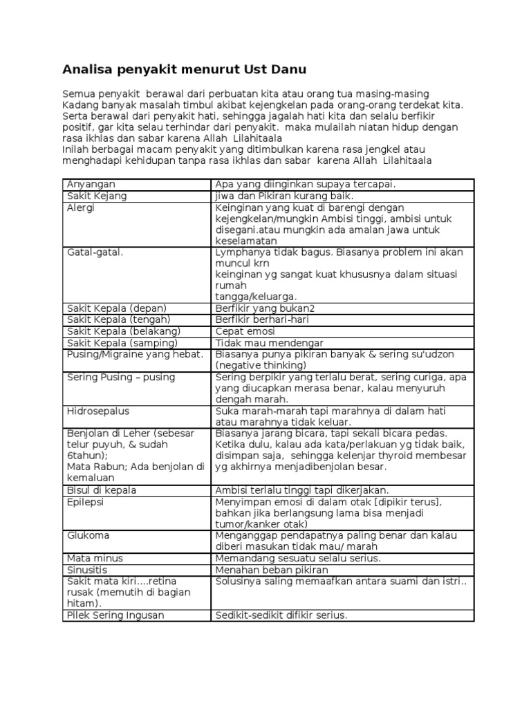 Analisa Penyakit Ala Ustad Danu Docx
