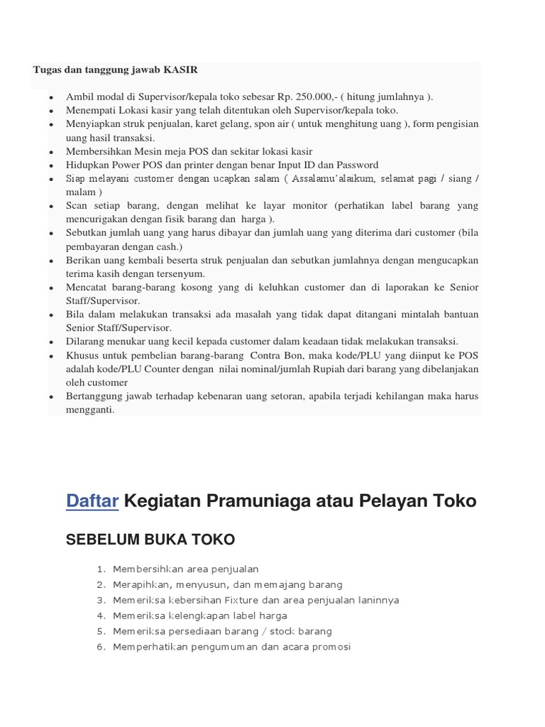 Tugas Dan Tanggung Jawab Kasir Docx