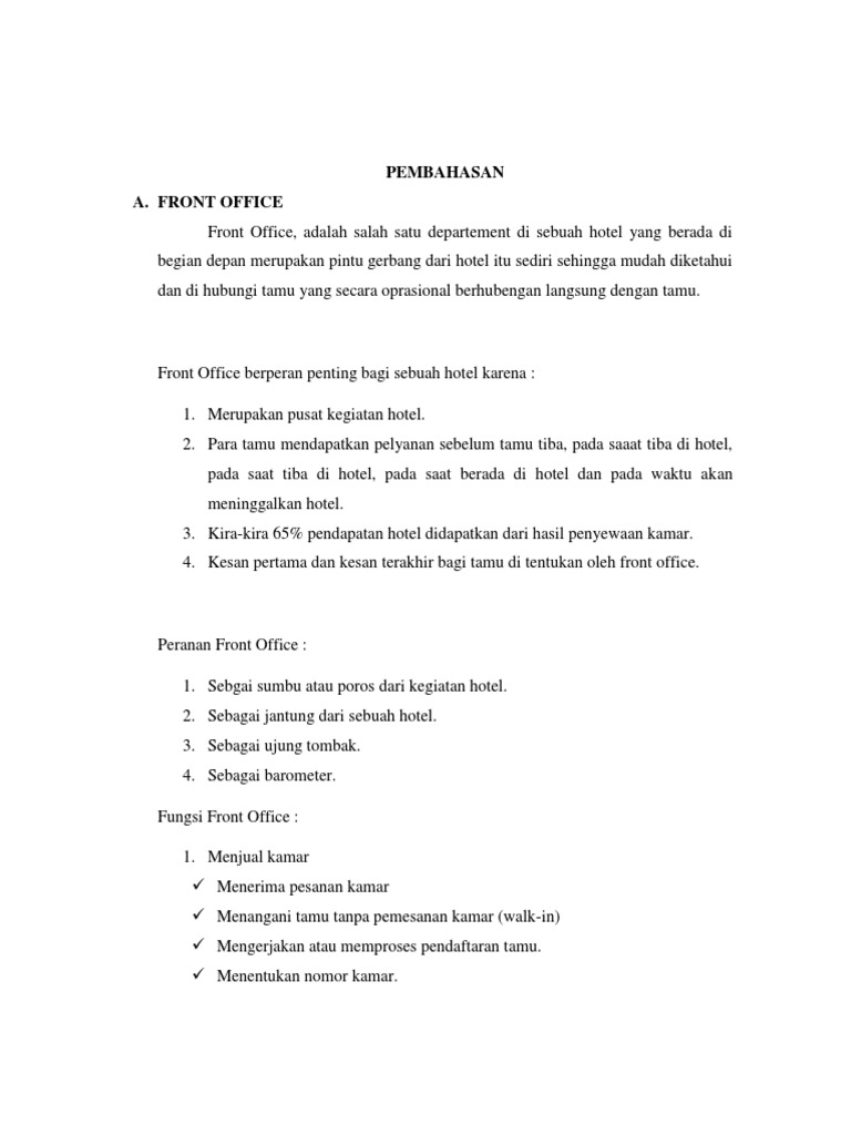 Bagian Reservasi Dan Front Office Cashier Ujiansma Com