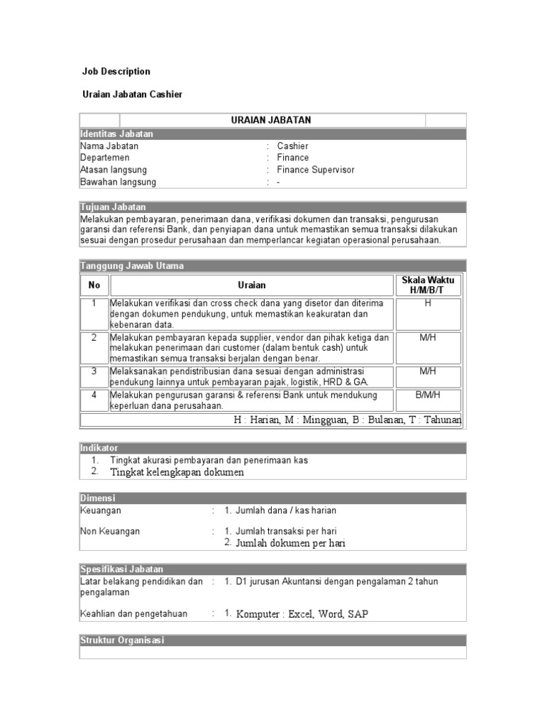 Apa Tugas Kasir Wewenang Uraian Tanggung Jawab Yang Di Lakukan