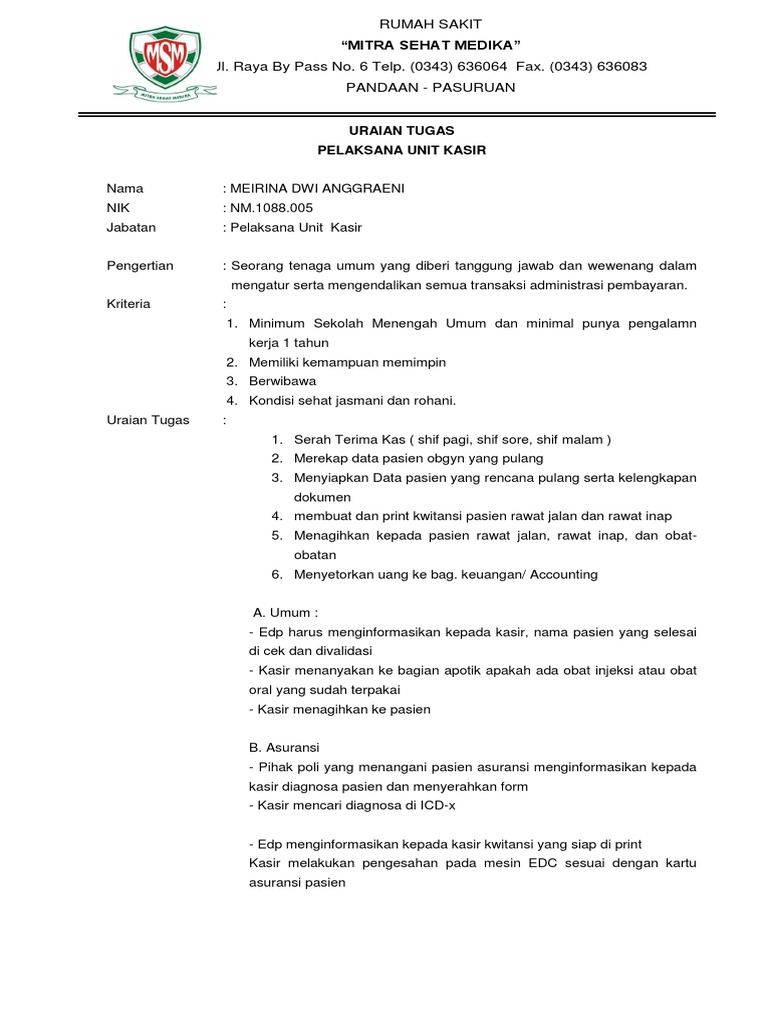 Uraian Tugas Kasir Rumah Sakit Guru Ilmu Sosial