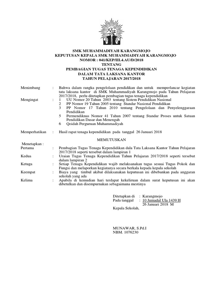 Pembagian Tugas Tenaga Tu Smk 2018