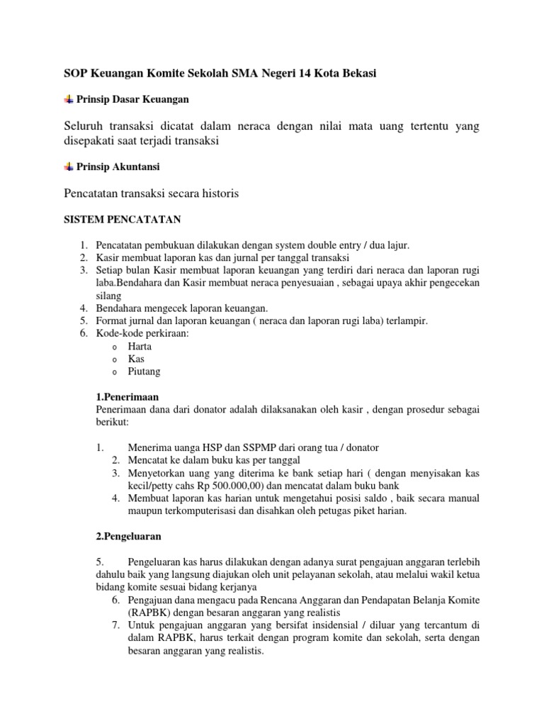 Standar Operasional Prosedur Keuangan Sop Keuangan Pdf Free
