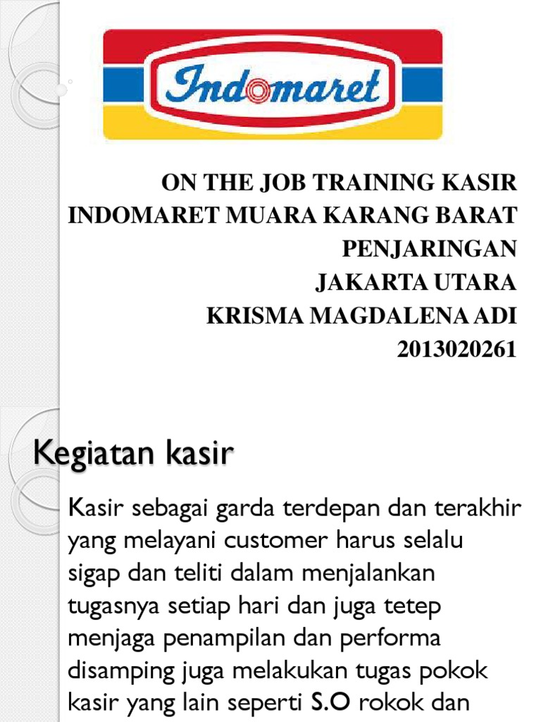 On The Job Training Kasir Indomaret Muara Karang Barat