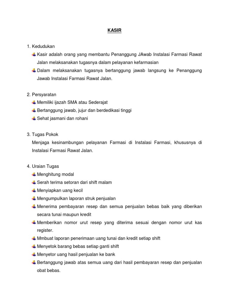 Uraian Tugas Kasir